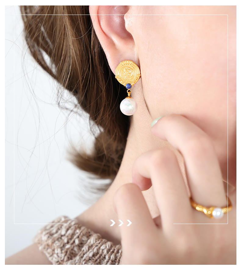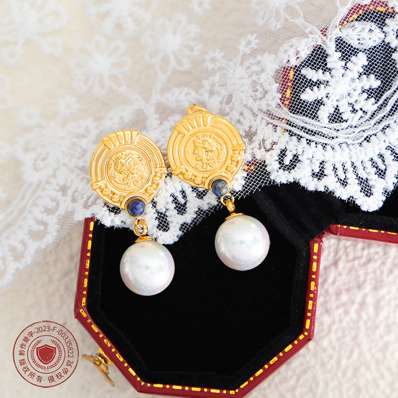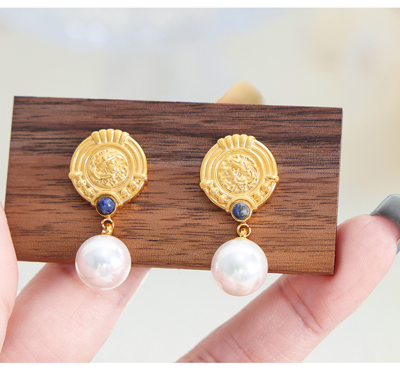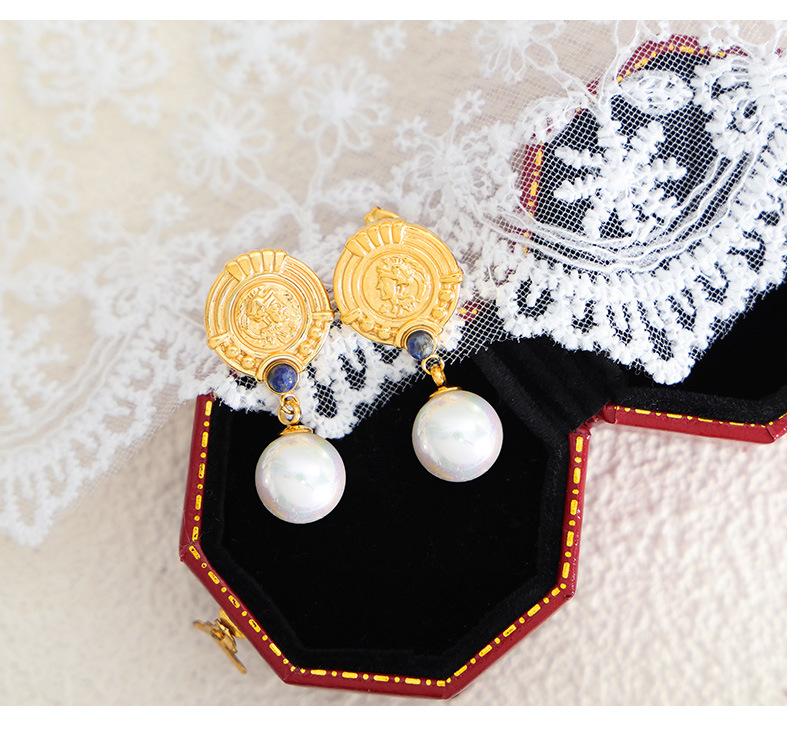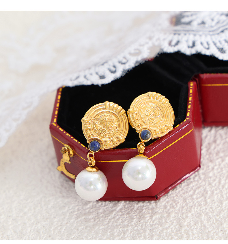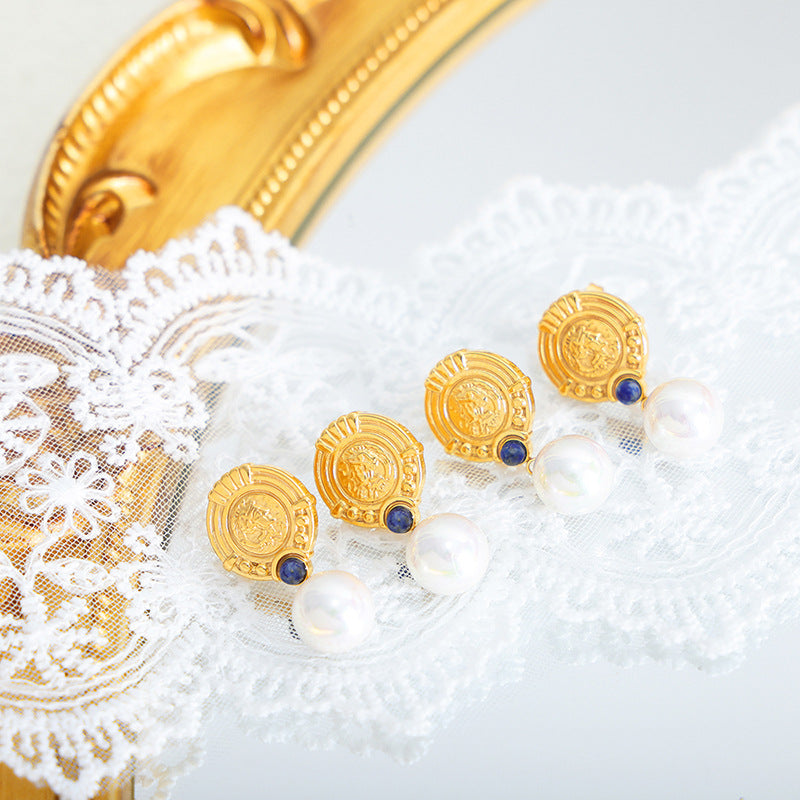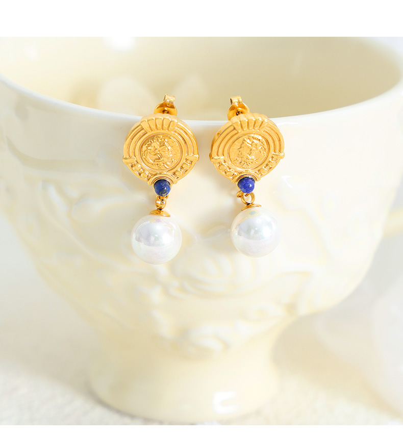 Ins Style French Romantic Round Brand Micro Glass Bead With Bluestone Ear Studs